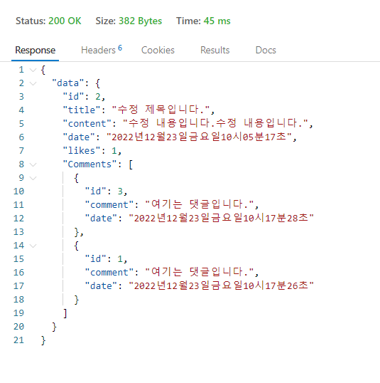 JOIN까지는 정상적으로 작동을 했다 이제 댓글을 최신순으로 뽑아오는게 문제다 처음 시도는 include안에 comment부분에 order를 설정해주는 방식으로 진행했다 하지만 order는 제대로 작동하지 않았다