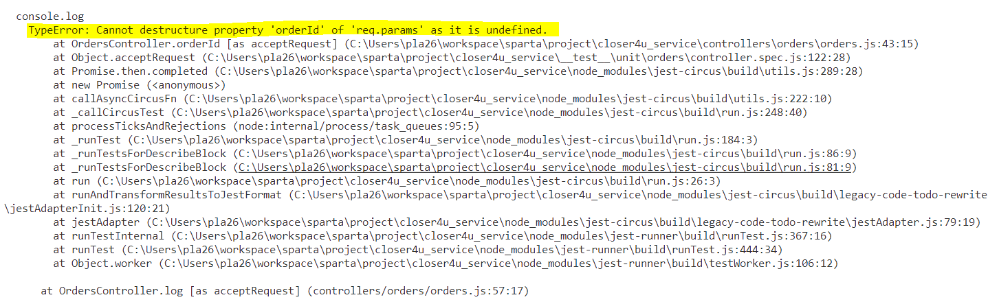 jest를 사용하면서 더미 리퀘스트 객체를 만들고 리퀘스트를 사용하는 지점에서 리퀘스트의 속성을 사용할 수 있게 해줘야하는데 그 부분에서 params를 선언해주지 않았다