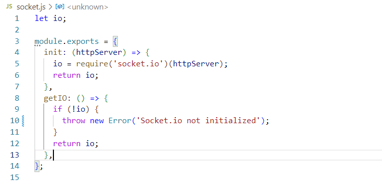 이런식으로 socket을 세팅해서 다른파일에서 사용할 수 있게 만들었다