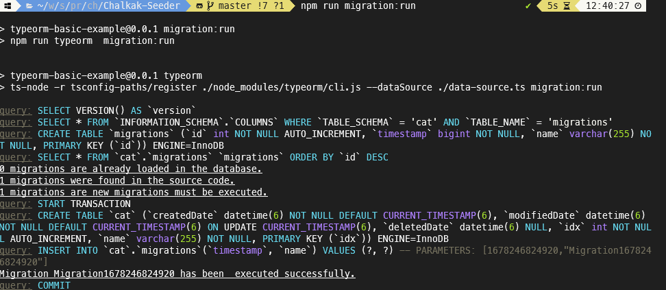 세팅이 되었다면 migration 스크립트를 실행해보자