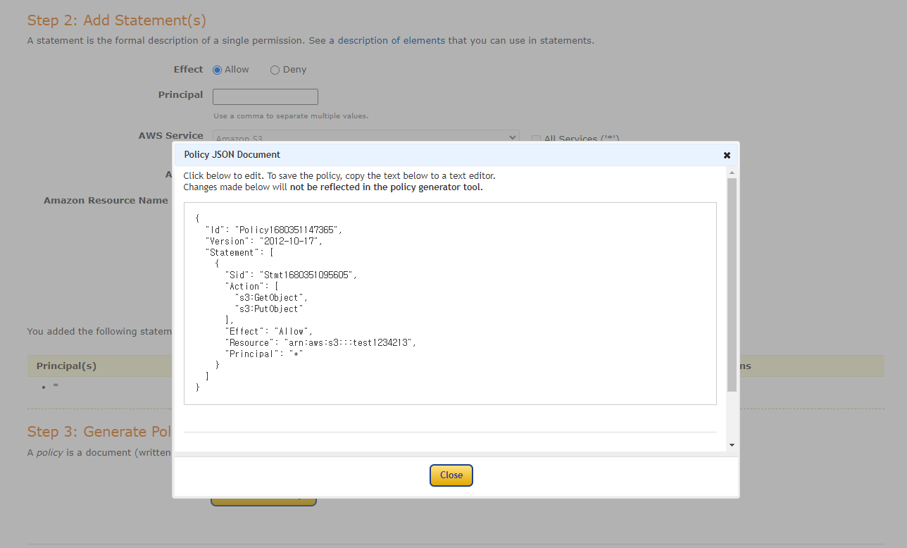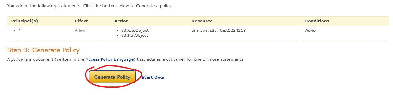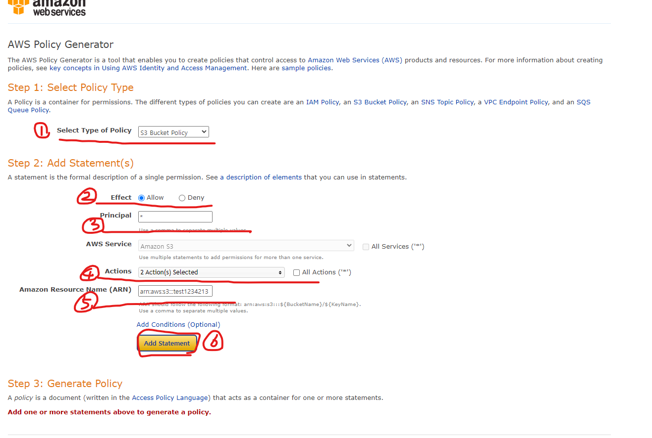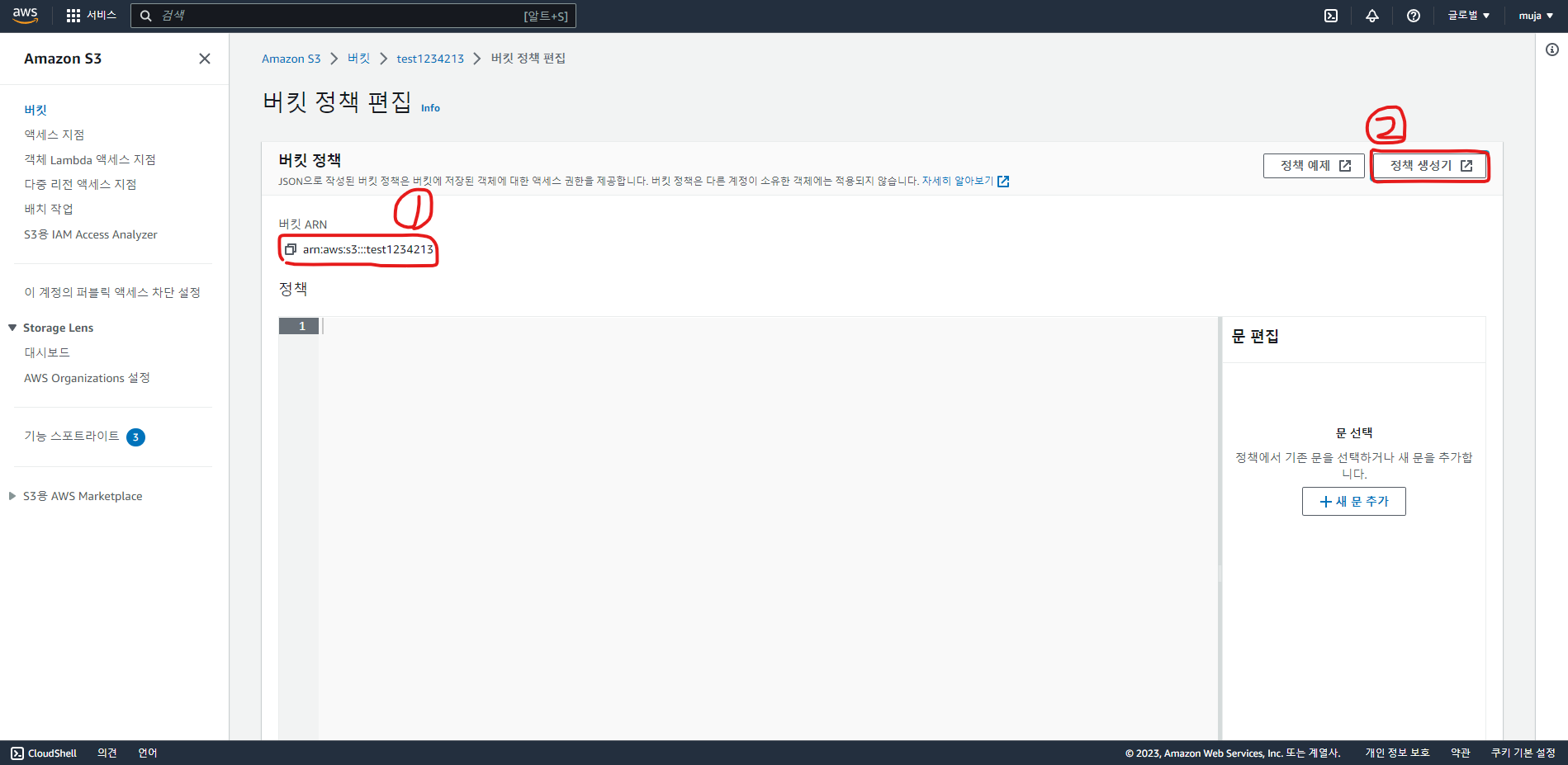 버킷 ARN을 복사해 두시고 정책 생성기로 이동하자