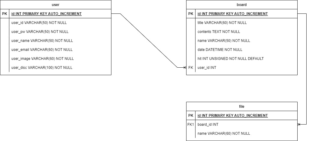 | 회원 가입 | POST | /users | {"user_id":"user_id", "user_pw":"user_pw", "name":"name", "email":"email", "image":"image", "disc":"disc"} |
